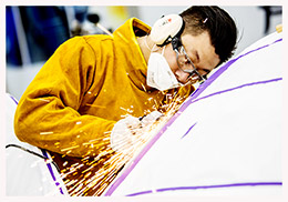 本专业开设的钣金课程,引入行业新工艺、新设备。在技术项目、技术标准、以及工具设备、耗材等多方面与企业实际相衔接,系统规范的学习和实践操作,不仅使学生熟练掌握汽车钣金修复项目等方面技术,同时加入铝合金车身钣金修复新技术,领先业内。